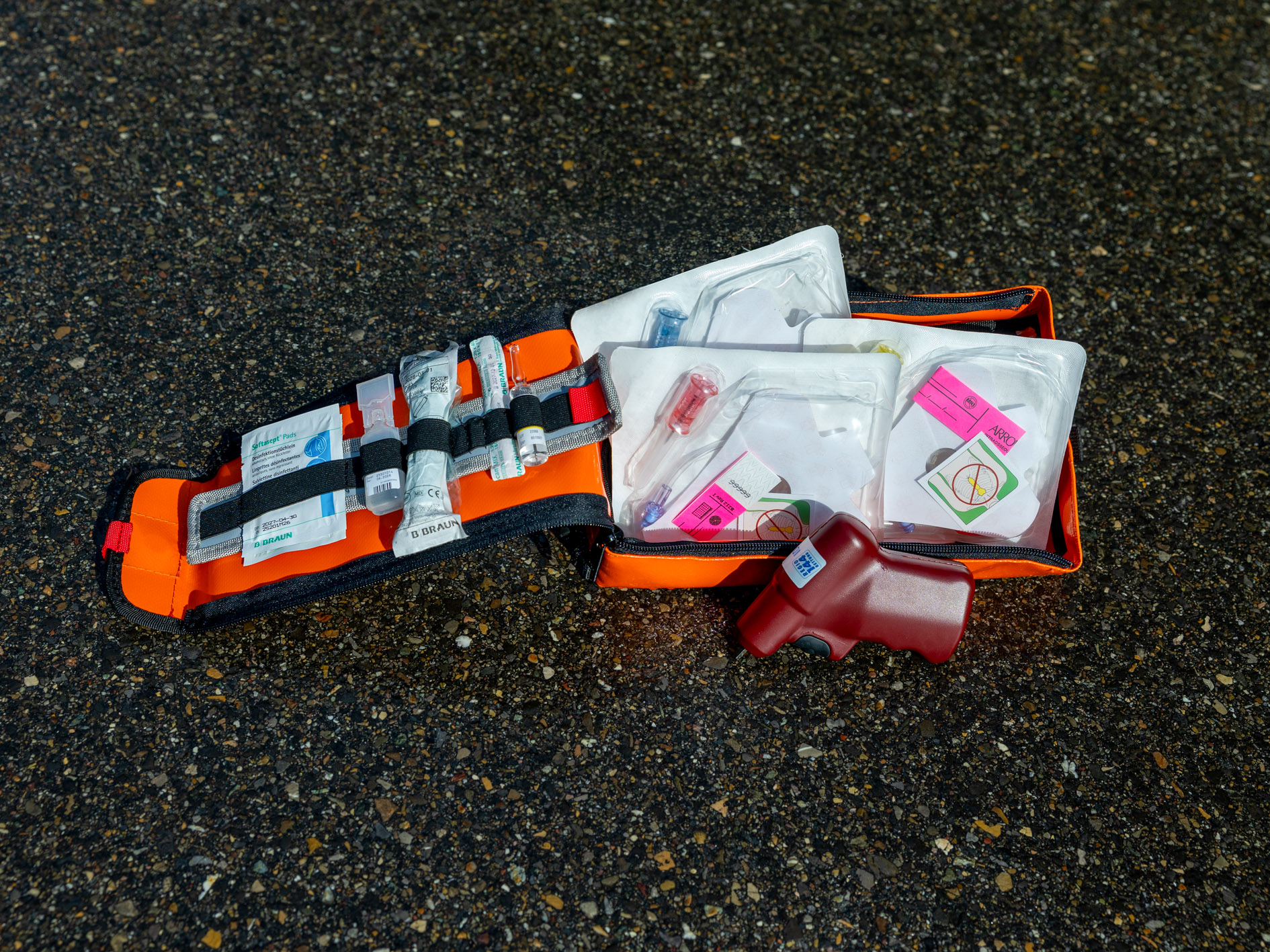 Ergänzend enthält der Rucksack Material zur Atemwegssicherung, ein Set für den intraossären Zugang sowie Verbandsmaterial für die fachgerechte Wundversorgung.